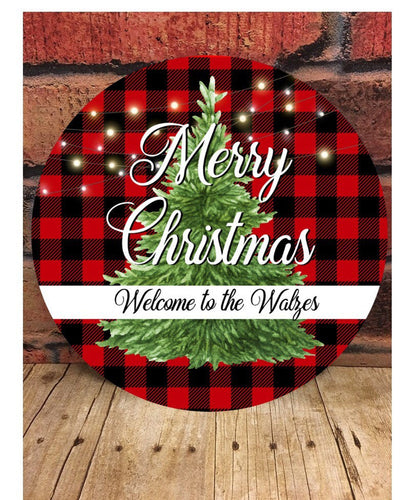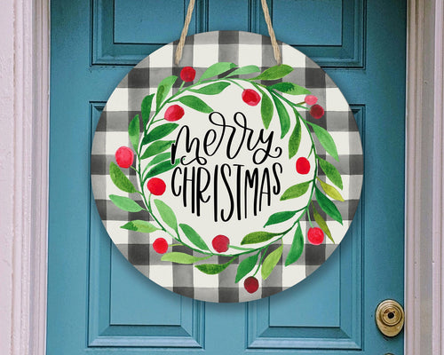 Buffalo Plaid Merry Christmas Welcome Door/Wreath Sign