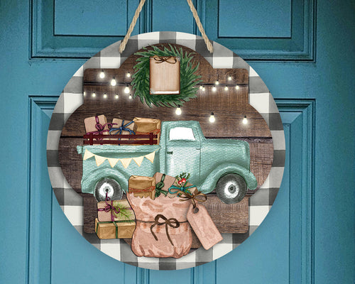Buffalo Plaid Vintage Blue Truck Door/Wreath Sign,