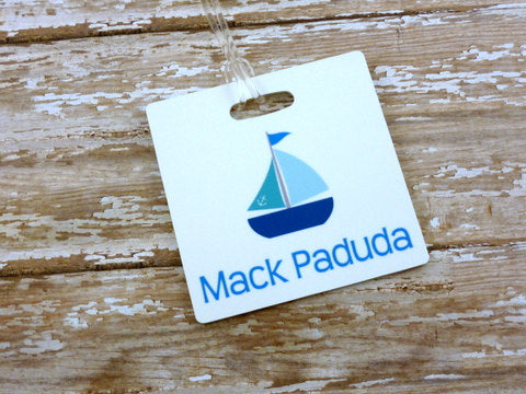 Blue Sailboat bag tags Set of 2