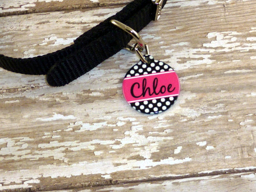 Black and White Polka Dot Dog Tag