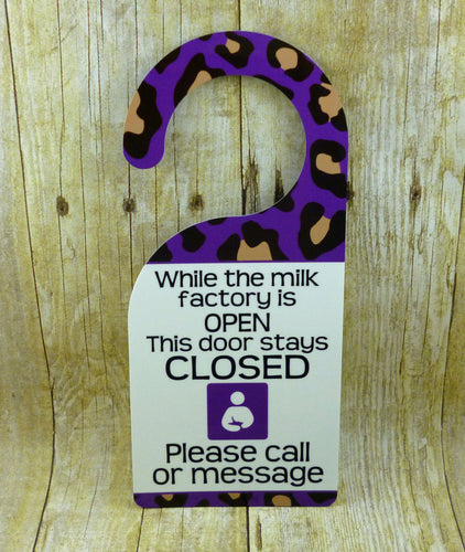 Purple Animal Print Breastfeeding/Pumping Door Hanger, new mom, baby shower gift, new baby sign, Do not disturb, Knock Please