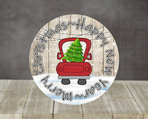 Merry Christmas - Happy New Year Red Truck Door/Wreath Sign
