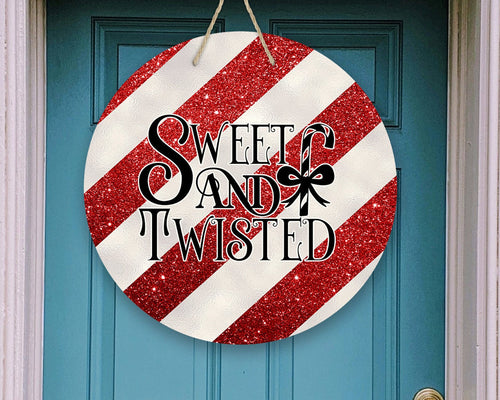 Striped Sweet and Twisted Faux Glitter Door/Wreath Sign